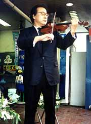 在日同胞バイオリニストの丁讃宇さん(50)が人命救助のため痛ましい最期を遂げた韓国人留学生、李秀賢さん(26)と日本人カメラマンの関根史郎さん(47)を悼み、1月31日、事故現場のJR新大久保駅前で鎮魂の小品を捧げた。