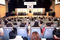 国民儀礼に続き、投獄を覚悟の上で日本の地で独立を叫んだ2・8先烈に対して1分間の黙とうが行われた後、全奎長・同YMCA理事長が開式辞を述べた。