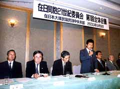 本団が主張し、本国の各界各層、そして日本の理解ある多くの人々が期待していた20世紀中の法案成立が遺憾にも実現されませんでした。法案成立が目前に迫ると朝鮮総連の反対活動も激しくなり、またこれを利用した日本政界の一部慎重論及び反対論者たちの活動が活発になりました。これらは95年、最高裁判所で有権解釈がなされたにもかかわらず、「憲法に違憲している」「参政権は日本国民固有の権利であり、帰化をすべきだ」と、時代錯誤的な理由を上げ、反対活動を激しく展開しました。