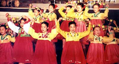 愛らしい踊りで目を引いた大阪朝鮮初級学校舞踊部の児童舞踊「花あそび」 |
