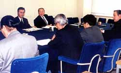 日本・与党3党のプロジェクトチームに 民団中央本部の見解を伝える具文浩副団長 (左から3人目)と徐元附総ロ局長(同2人目) |