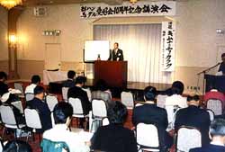 | | 10周年を祝う会であいさつする櫻井会長 |