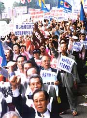 全国から日比谷公園野外音楽堂に参集した在日同胞ら4000人は、国会の衆参両院の面会所での請願活動と道行く日本の市民に向けて永住外国人への地方選挙権付与法案の早期立法化を訴えた。赤坂見附から虎ノ門、霞ケ関などのオフィス街で理解を求める声をあげ、市民に訴えた。