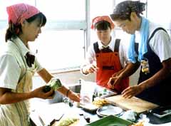 キムチ料理授業は韓日食文化交流の一環としての企画。大阪と東京の駐在事務所から呼びかけ、95年度から毎年実施している。今年度は大阪の公・私立高校4校で計10回、東京でも和光学園など3校で計10回の予定。