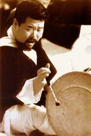 金氏は流浪の芸能集団・男寺党の末裔で、幼少から民族楽器を操り、80年に4人の青年でグループ「サムルノリ」を立ち上げた。爆発的な人気を得て、オリンピックなどの大舞台をはじめ世界各国で3600回以上の公演をこなしてきた。