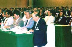 同胞世帯数別の班別討論の後、晩餐会には李漢東国務総理、金守漢・韓日親善協会中央会会長や孔魯明氏をはじめ歴代駐日大使らが参席した。李総理は「日本の歪曲教科書は決して容認できない。民団の不採択キャンペーンの展開は、世論形成に大きな力となった。継続した努力を」と期待を込めた。