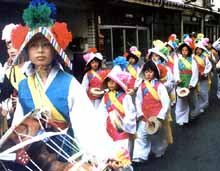 また、前日行われた農楽パレードでは、地域のオモニやオリニ、青年ら50余人が華麗な衣装を身にまとい、ケンガリやチャンゴの音も高らかに御幸森商店街をぬけ、生野の街を練り歩いた。