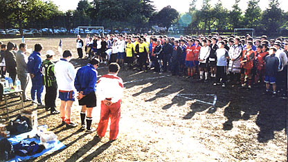 大会は4チームずつ4ブロックに分かれて予選リーグ戦を行い、各組1位で決勝トーナメントを行った。各試合ともプロ顔負けの闘志あふれるプレーが続出。熱戦が繰り広げられる中、決勝は「留学生」と「漢拏」で対戦。2−0で留学生チームが初優勝を飾った。