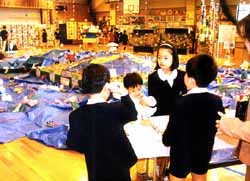 同展覧会は東京韓学が4年に1度開く大がかりな祝祭行事。今年は初等部児童が一人平均5点の力作を出品、全部で2000点の絵、工作、デザイン作品が並んだ。統一テーマは「世界は一つー手に手をつないで未来に向かって」。
