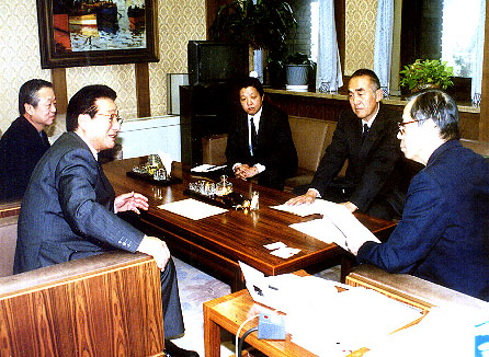 解放直後の混乱の中から在日同胞自ら工夫し、守り育ててきた焼肉店など関連業界が狂牛病(牛海綿状脳症)の余波を受けて9月以来、かつてない売り上げ減少に苦しんでいる。こうした事態に民団は11月5日、適切な対処を求める小泉首相に宛てた要望書を福田康夫官房長官(右)に手渡した。働きかけは武部勤農林水産相と坂口力厚生労働相に対しても行った。