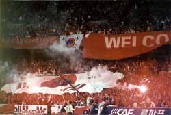 韓国戦3試合、大型応援団を構成