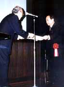 | 藤井理事長から 表彰状を受ける尹基さん |