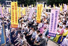 民団は「地方参政権」の 実施めざして継続運動を 推進している。 写真は昨年の「6・5決起集会」 |