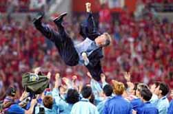 | 対トルコ戦試合後、ヒディンク監督を胴上げする韓国代表 |
