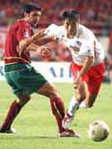 対トルコ戦、フリーキックからゴールを決めた李乙容 |