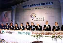 【ソウル】新韓銀行(李仁鎬銀行長)の創立20周年記念レセプション(写真)が5日、ロッテホテルで開催され、民団中央本部の金宰淑団長、姜永祐議長、洪性仁監察委員長をはじめ、韓国の各界各層から1500余人が参席した。