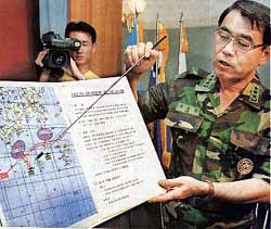 | 「西海交戦」状況を説明する 韓国国防部の合参作戦本部長 (6月29日) |