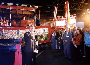 【大阪】大阪の風物詩として定着していた「四天王寺ワッソ」の来年秋の再興に向けて、巡行に使われる船だんじりや衣装、道具類の物品見学会が25日、三洋電機大日倉庫で開かれた。四天王寺ワッソ事務局(民団大阪本部内)代表の金昌植同本部団長は「大阪府・市のまつり、ひいては大衆のまつりとして必ずや再興しなければならない」とあいさつ、再開を誓った。