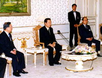| | 青瓦台に金大中大統領を訪れ歓談する民団中央本部の代表 |