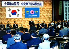 全国地方団長・中央傘下団体長会議が13日、中央会館で行われ、1)地方参政権獲得運動 2)本国経済支援活動 3)全地方組織の研修強化―などの前半期運動に全力を傾注することを確認した。会議後には新任の金ソッキュ大使の歓迎会を開き、在日同胞社会と本国との一体感で本国の経済難局を乗り切っていくことを確かめた。
