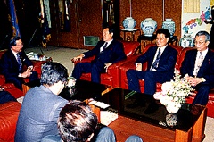| 2002年韓日共催W杯について意見交換する 朴世直委員長と辛容祥団長 |