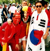 とくにパルク・デ・プランス競技場で行われた韓国―ベルギー戦で、韓国応援席は韓国から駆けつけた「レッド・デビルズ」の赤いユニホームで一色。その中に「共同応援団」のサポーターたちが加わった。