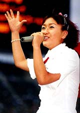 | 共催イベントで「友情のゴール」 を歌う福田奈々さん |