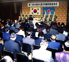 関東大震災時に流言・ひ語によって虐殺された多くの同胞の霊を慰めるための追悼式が一日、民団中央会館はじめ関東周辺の虐殺地で営まれた。中央会館で行われた追悼式(民団東京本部主催)には夫昇培団長はじめ幹部、地元同胞ら二百余人が参加し、七十五年前の震災時に犠牲となった同胞を追悼した。
