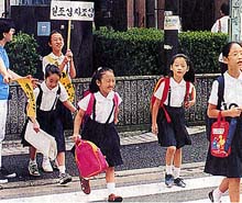 韓国、日本ともに雨の多かった夏休みだっただけに、子供たちもちょっぴり物足りなさそう。それでも、久しぶりにクラスメートや先生たちに再会できるとあって、元気な笑顔で登校。「ひさしぶりー」「元気だった」と声をかけ合っていた。
