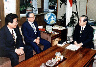 この日、民団中央本部からは辛団長のほか、金宰淑副団長、徐元テツ国際局長が訪問し、野中長官と面談した。席上、辛団長は金大中大統領の公式訪日についてふれ、「長く続いた韓日のぎくしゃくした歴史を清算するためにも、大統領の訪日が大きな契機になると期待している」と述べた。野中長官も「わたしも同感で、金大統領の訪日が新しい日韓関係の土台となるよう期待している」と述べた。