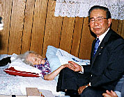 辛容祥団長は十四日、最高齢者の一人、愛知県の洪葵愛ハルモニ宅を訪れ、祝賀金を手渡しながら「元気そうで何よりです。百年という長い人生で戦前・戦後の混乱期に大変苦労された分まで長生きしてください」と同行した権泰洙・民団愛知県本部団長と朴永壽・新西支部支団長とともにねぎらった。