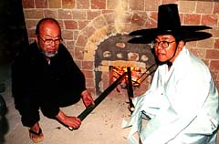 韓国の窯火、友好誓い共同登り窯に