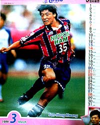 J・リーグ、セレッソ大阪の一九九九年オリジナルカレンダー(A2サイズ)がこのほど発売された。今年、韓国から移籍した黄善洪選手の迫力あるプレーの写真も三月に登場している。セレッソ大阪クラブショップ「ロスポロス」やフランドリーショップ各店で販売するほか、通信販売も行う。定価千五十円。問い合わせは06(609)2660へ。