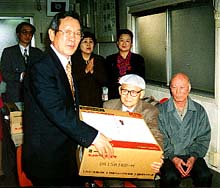 金大使は二十一日朝、民団東京杉並支部(韓安燮支団長)を訪れ、支部に招いた独り暮らしのお年寄り団員を慰労するとともに、「韓国のオンドルのように温かいお正月を」とホットカーペットをプレゼントした。