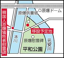 | 平和記念公園内への移設が決まった 「韓国人原爆犠牲者慰霊碑」 |