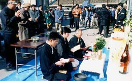 【兵庫】阪神大震災からまる四年の十七日、神戸市長田区の旧市民球場跡地に設置されている西代仮設住宅で、地元自治会「長寿友の会」が中心となって「合同慰霊祭」が営まれた。民団兵庫県本部(李且守団長)でもこの日の慰霊祭のために温かい參鶏湯二百食分を提供して住民を激励した。