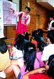 「あたし、ウリマルを習いたい。教えてくれるところないですか」。金さんはとっさのことで思い当たらなかった。児童の両親と話して熱意が本物と知った金さんは、この少女一人のためだけに「子どもハングル講座」を始めた。横浜信愛塾の呼び掛けもあり、受講生も現在は十人を超えるまでになった。金さんの地道な活動は神奈川韓国総合教育院(金明植院長)の目に止まり、昨年十一月には励ましの助成金が贈られた。