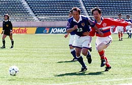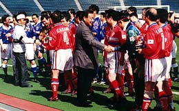 韓国の実力に対し、釜本議員は「韓国はサッカーが国技だけあって、子供のころからやっている議員が多く、うまい。二〇〇二年W杯までには差を縮めたい」と話していた。