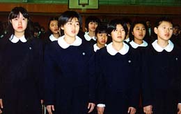 新入生は中学校四十八人、このほか本国から四人が編入してきた。高等学校は四十四人。保護者百人余りが見守るなか緊張した面もちで張校長の歓迎辞を聞いた。七日には小学生、九日には新入園児を迎えた。