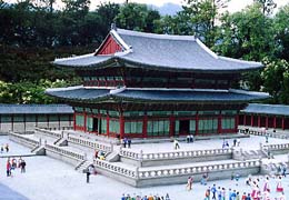 世界各国の有名な建造物のミニチュアを展示する栃木県藤原町のテーマパーク「東武ワールドスクウェア」(三浦侃社長)内のアジアゾーンに二十四日、韓国李王朝時代(一三九二〜一九一〇年)の宮廷「景福宮」の一部を再現した25分の1スケールのミニチュアが登場した。