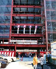 | | 急ピッチで工事が進む9階建ての「観音寺」 |