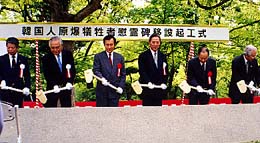 【広島】広島市の平和記念公園内に移設される「韓国人原爆犠牲者慰霊碑」の起工式が5月21日、移設予定地で行われ、慰霊碑移設委員会の権養伯委員長や秋葉忠利広島市長ら約60人が出席した。