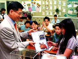 韓国の文化遺産を自分の手で作り、祖国にふれよう。韓国のベンチャービジネス会社の一つである「ペーパーマジック社」は五月二十九日、東京韓国学校(孫相テツ校長)の「土曜学校」を訪れ、同社の製品であるコブッソン(亀甲船)などのりもハサミも使わずに作れる韓国文化遺産の紙模型をオリニたちにプレゼントした。