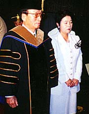 | | 名誉学位を受ける李根植氏(左)と夫人 |