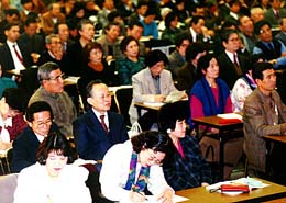 | 老若男女の同胞が学び語り合う場となっている民族大学 (写真は93年の大阪教室) |