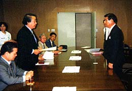 民団大阪府本部(洪性仁団長)と同八尾支部(朴載吉支団長)の代表は6月24日、八尾市役所に柴谷光謹市長を訪れ、地域振興券の対象外となった在日同胞など外国籍住民にも独自の措置を講じてほしいとの要望を行った。