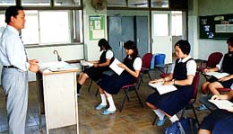 | | 金・民団大阪国際部長の授業を聞く生徒たち |