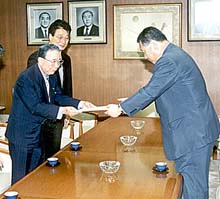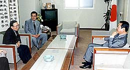 この日、民団中央本部の辛容祥団長、金宰淑副団長、徐元テツ国際局長は自民党本部に森喜朗幹事長を訪れ、現在国会に提出されている永住韓国人に対する地方参政権付与の法案を早期に審議し、立法化するよう求めた。