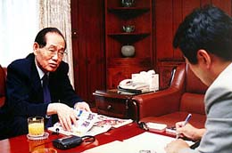 | | 本紙のインタビューに答える、黄長Y・元北韓労働党書記 |
