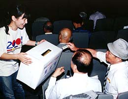 15日、光復節式典の会場でも早速手づくりの募金箱が設けられ、小さなオリニから一世のハラポジまで参加した同胞らは積極的に"愛の募金"を寄せた。